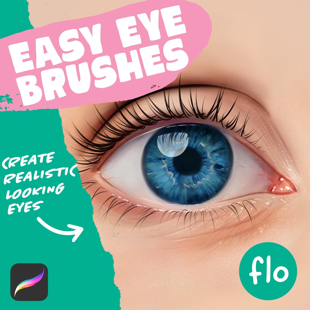 This Procreate Brush Pack contains the Basic Flo brushes, Blender brushes, eye brushes, hair brushes and wonderful textured skin brushes.