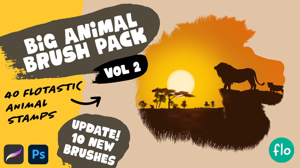 This pack contains 40 wonderful animal brushes for Procreate and Photoshop. Create lovely landscapes with easy animal silhouettes. You'll find lions, tigers, hyenas, flamingos, foxes, snakes and much more!