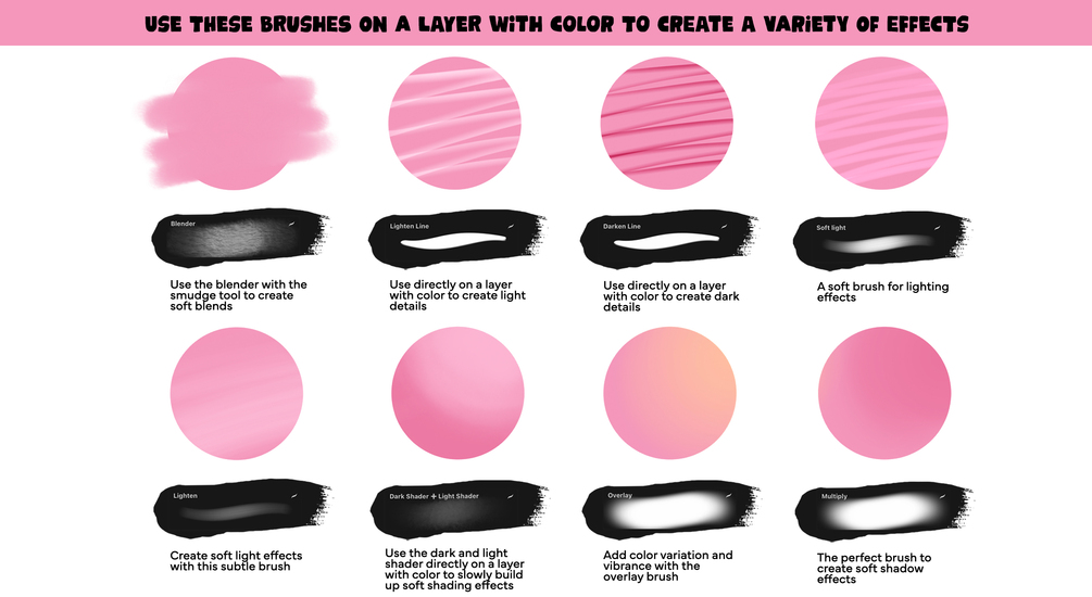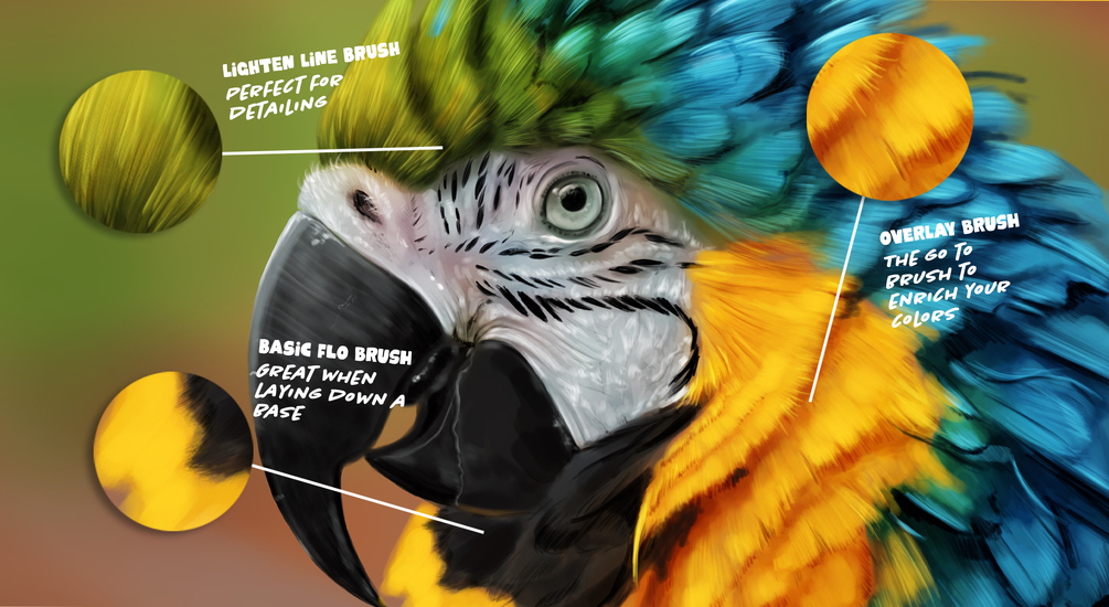A Basic Set of essential brushes I use in Procreate on iPad Pro. These brushes are used for sketching, blocking in color, deepening shadows, adding color variation and making highlights. I use these in every Procreate digital painting I make.