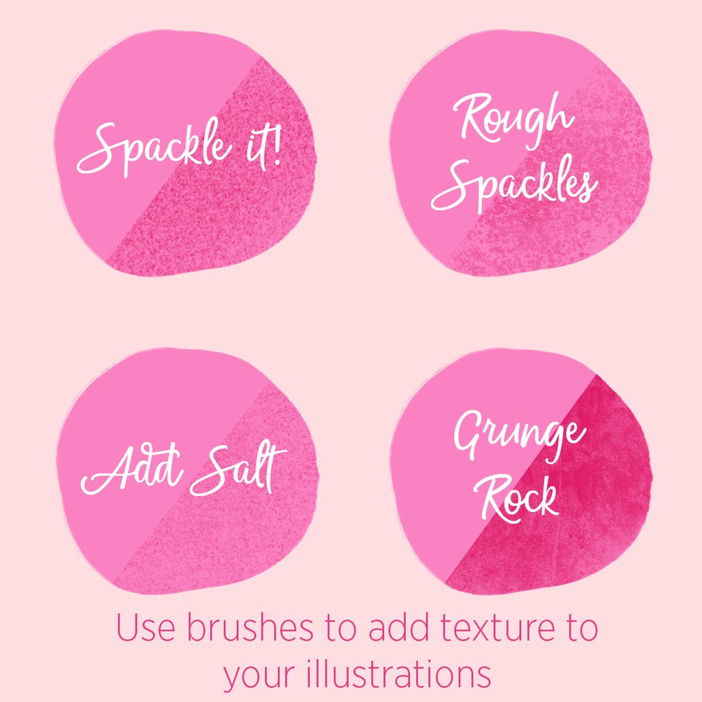 - 4 Special texture brushes (Spackle it!, Rough Spackles, Add Salt and Grunge Rock)