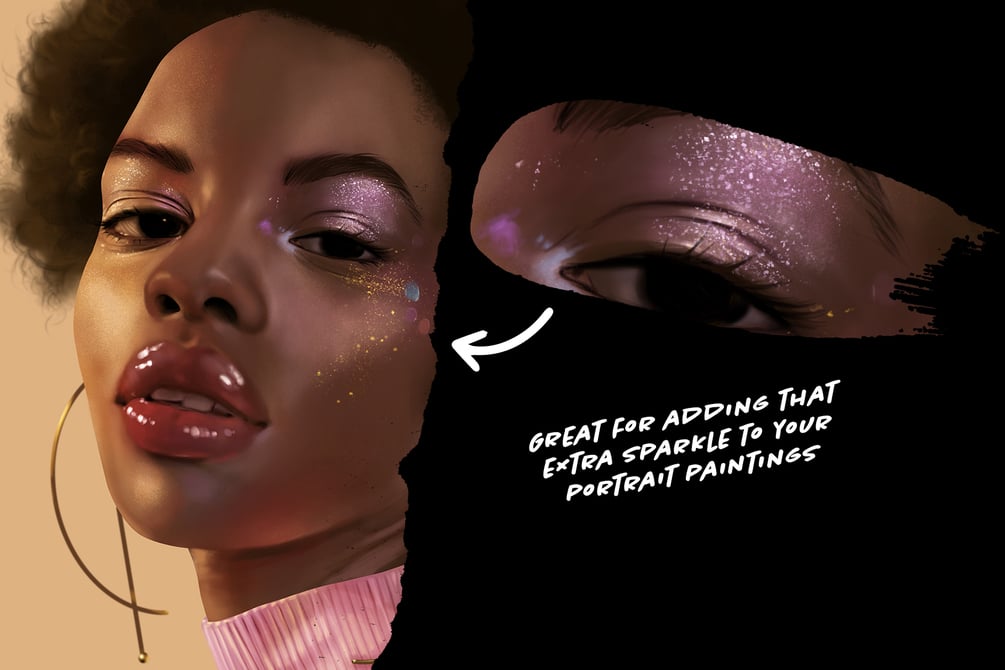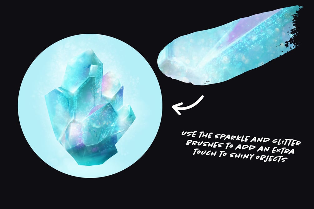 You want to add glitter to your digital paintings? These glitter and sparkle brushes are set to Screen blending mode and work best with a light color on a darker background. Make your artwork sparkle!
