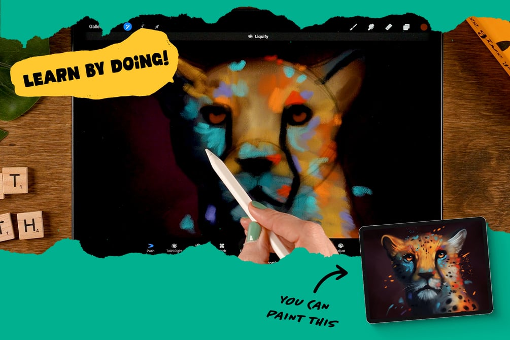 In this class I will teach you all the basics of digital painting in Procreate and you will be learning by doing. So during this class we will paint a lovely looking cheeta with painterly brushes together.