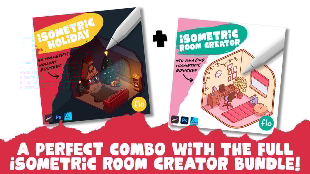 Unlock the magic of isometric room design and transform your creations from ordinary to extraordinary. Begin your holiday design adventure today with the Flotastic Isometric Holiday Creator Brush Pack. Your imagination is the only limit!