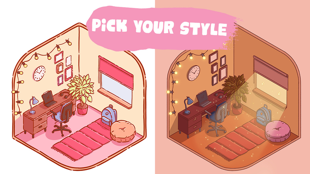 When using these isometric room brushes, create a new layer for each element you add, that way you can easily move and transform the object you have added. Once you have arranged all the elements, you can merge the layers, lower the opacity and then trace your complete isometric room on a new layer. While tracing your room, you can add your preferred style and use your favorite line art brushes. The possibilities are endless!