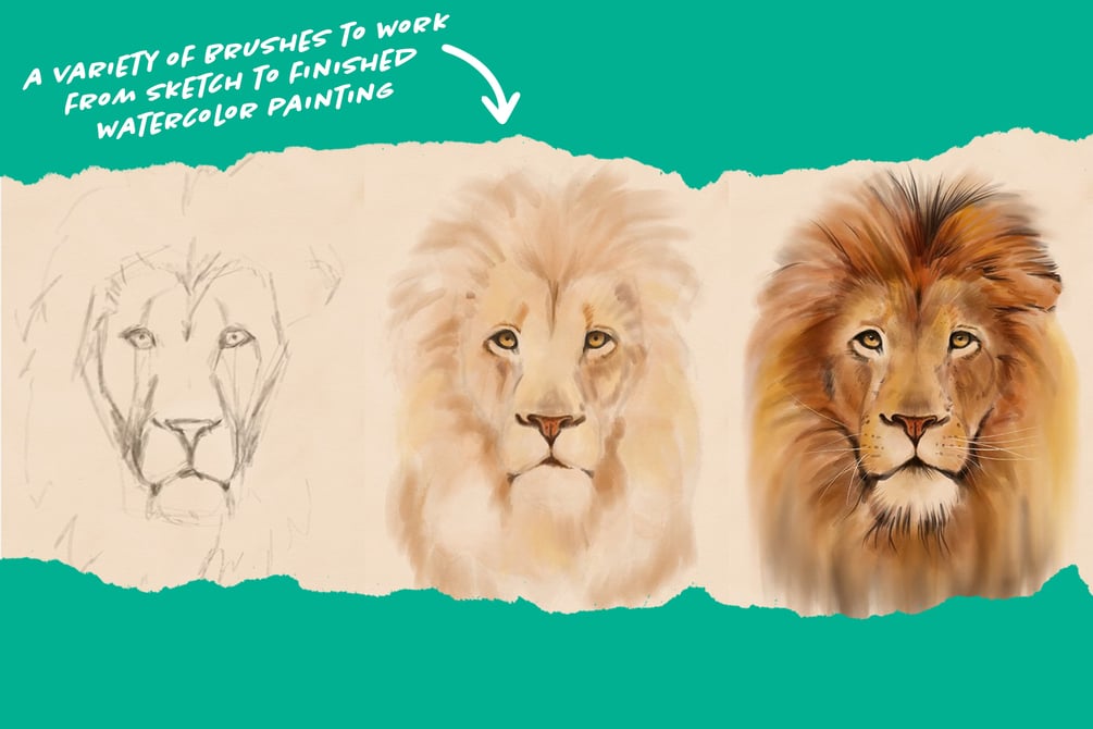 In this Watercolor Brush Pack you'll find brushes that are developed for: