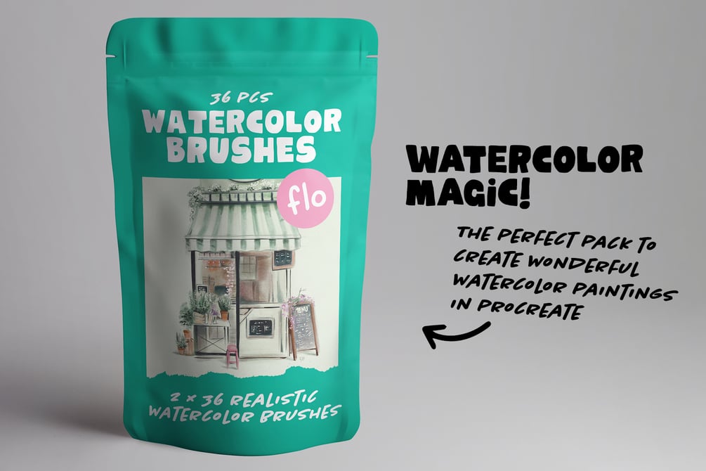 With these Procreate Watercolor Brushes you can create a realistic watercolor effect in Procreate. This pack contains 2 x 36 brushes, the first 36 brushes have a subtle paper texture and the second 36 brushes have a rough looking paper texture.