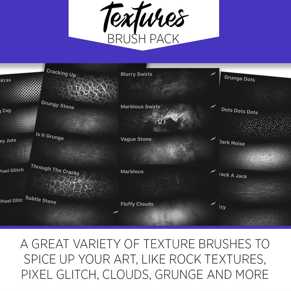With this brush pack you will be adding wonderful textures to your paintings in Procreate. The pack contains 30 brushes with a great variety of textures, like stone, marble, noise, grunge and more!